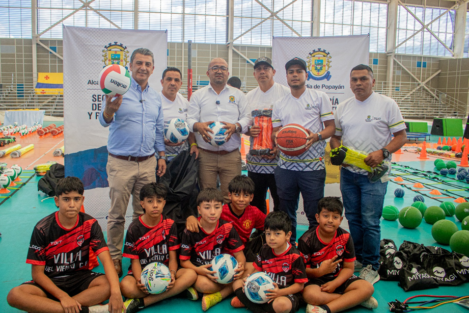 La Alcaldía de Popayán, a través de la Secretaría del Deporte y Recreación, hizo entrega de implementos deportivos a 39 escuelas de formación deportiva que funcionan en diversas comunas y sectores rurales del municipio. Esta dotación beneficiará a 1.565 niños, niñas y adolescentes que actualmente se forman en disciplinas como fútbol, skateboarding, baloncesto, voleibol, natación, BMX, karate, artes marciales mixtas, entre otras.